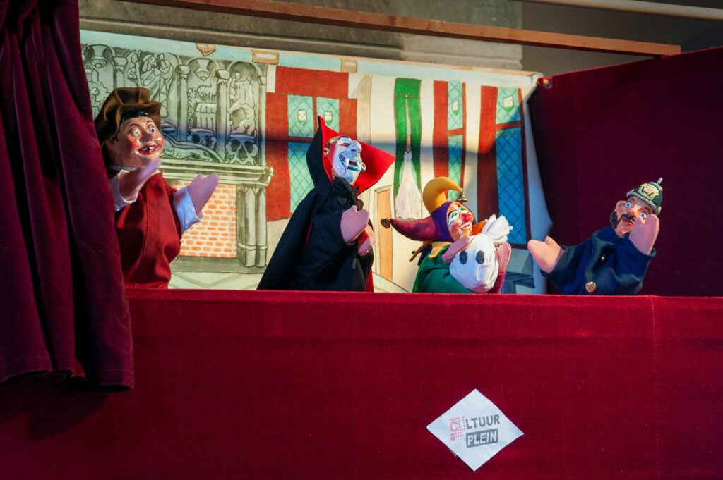 Een ouderwetse poppenkast terugbrengen op Het Cultuurplein tijdens de Krabbenfoor was al lang een gekoesterde wens. Dit jaar kwam die wens uit. “Een poppenkast maakt een rivaal door; in de Efteling en op de Dam in Amsterdam zijn ze terug van weggeweest, dan kan Bergen niet ontbreken”, vertelt Eric Elich, die het poppenspel terugbracht. Een aantal jaren geleden is er voor Jeugdmonumentendag een klassieke poppenkast gemaakt met veloursgordijntjes en op doek geschilderde decors. “ Hans Boschman heeft de kast in opslag. Dan is het zonde om hem op de zolder te laten staan.” Er werd een verhaal geschreven, nieuwe decors en 5 nieuwe karakters, waaronder Toontje, gemaakt. Wim van Popelen zorgde ervoor dat we bij La Pucelle in de zaal terecht konden.   Toontje, de mini-evenknie van Toontje van de Bergse Stadsreuzen, is werkelijk de ster van het verhaal dat zich afspeelt in en rond het Markiezenhof. Toontje ontmoet daar andere Bergse figuren, waaronder een nar en graaf Dracula. “ Uiteraard komen thema’s als verkleden en het Bergs dialect voorbij, zegt Eric. “Het was onverwacht druk. Sommige kinderen zaten helemaal in het verhaal.” Wie weet komt er een vervolg. Het is voor herhaling vatbaar.
